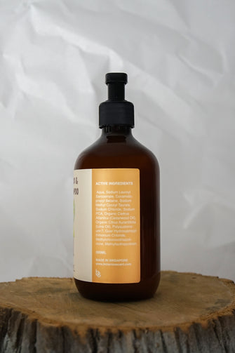 Ingredients: Aqua, Sodium Lauroyl Sarcosinate, Cocamidopropyl Betaine, Sodium Methyl Cocoyl Taurate, Sodium Chloride, Sodium PCA, Organic Cedrus Atlantica (Cedarwood Oil), Organic Citrus Aurantifolia (Lime Oil), Polyquaternium-7, Guar Hydroxypropyltrimonium Chloride, Methylchloroisothiazolinone, Methylisothiazolinone.