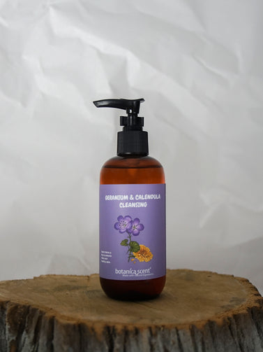 Ingredients: Aqua, Coco Glucoside, Cocamindopropyl Betaine, Sodium Myristoyl Sarcosinate, Calendula Extract, Sodium Methyl Cocoyl Taurate, Sodium Chloride, Polyquaternium-7, Pelargonium Graveolens (Organic Geranium Oil), Citric Acid, Tetrasodium EDTA, Methylchloroisothiazolinone, Methylisothiazoline