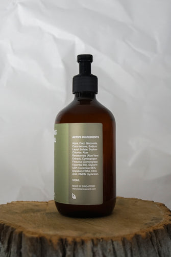 Ingredients: Aqua, Coco Glucoside, Coco-betaine, Sodium Lauryl Sulfate, Sodium Chloride, Aloe Barbadensis (Aloe Vera Extract), Cymbopogon Flexuous (Lemongrass Essential Oil), Glycerin USP, Cocamide DEA, Disodium EDTA, Citric Acid, DMDM Hydantoin.