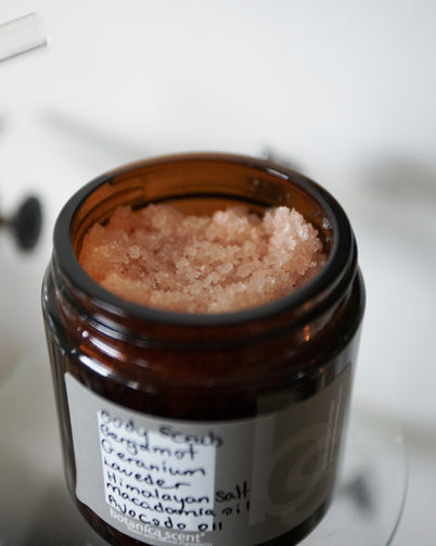 Pink himalayan salt, Bergamot, Geranium, Lavender, Avocado oil
